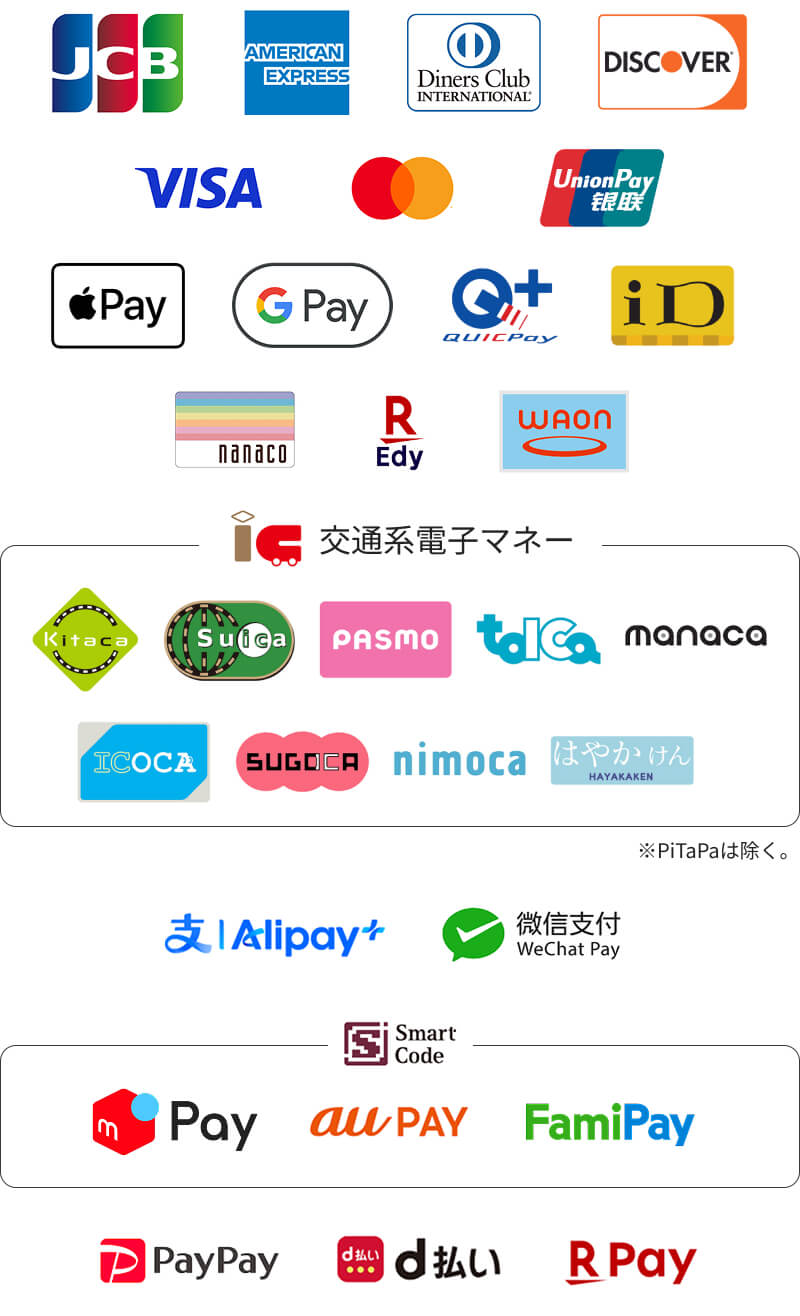 以下のお支払い方法をご利用いただけます: